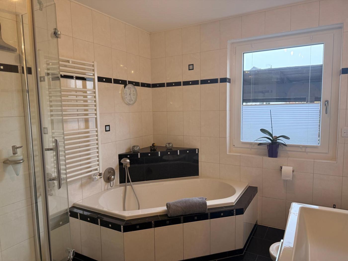 Three-Bedroom Apartment. Guests will have a special experience as the apartment features a fireplace. This spacious apartment consists of 1 living room, 3 separate bedrooms and 2 bathrooms with a walk-in shower and free toiletries. Guests will find a stovetop, a refrigerator, a dishwasher and kitchenware in the fully equipped kitchen. The apartment also offers a barbecue. Featuring a terrace with garden views, this apartment also provides soundproof walls and a flat-screen TV with streaming services. The unit offers 3 beds.
