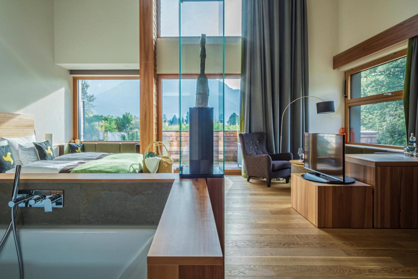 Superior Double Room with Balcony. This double room features a balcony, air conditioning and seating area. This spacious double room has a balcony with panorama mountain view, seating area, open bathtub as well as a large rain shower. ;