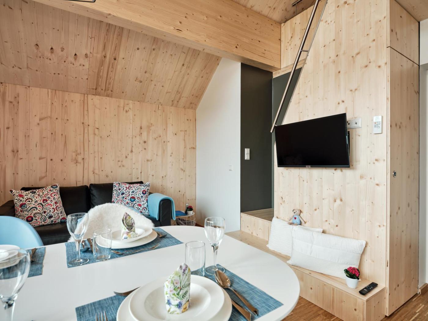 Two-Bedroom House. This luxurious holiday home provides a private pool, a hot tub and a sauna. Boasting a private entrance, this air-conditioned holiday home features 1 living room, 2 separate bedrooms and 1 bathroom with a walk-in shower and a hairdryer. In the well-fitted kitchenette, guests will find a stovetop, a refrigerator, a dishwasher and kitchenware. Featuring a terrace with lake views, this holiday home also features a washing machine and a flat-screen TV with satellite channels. The unit has 3 beds. ;