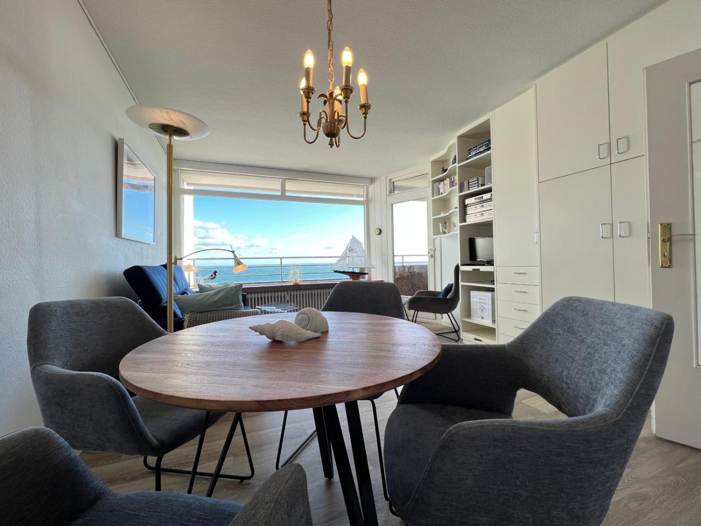 The apartment with a balcony and sea views has 1 bedroom, a living room, a TV, an equipped kitchen with a dishwasher and an oven, and 1 bathroom with a shower. Guests can take in the ambience of the surroundings from an outdoor dining area.