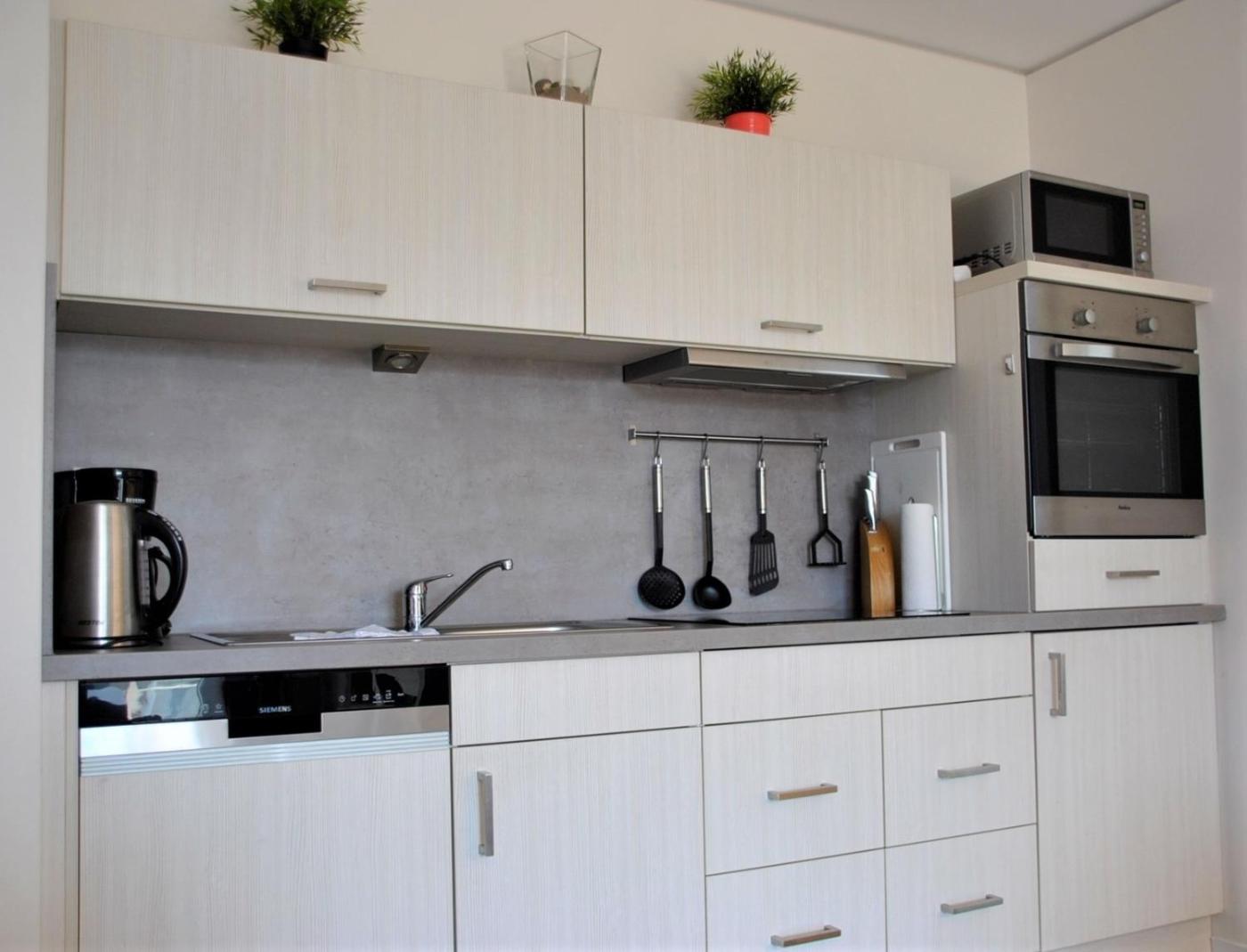 The spacious apartment comes with 2 bedrooms, a fully equipped kitchenette with a dishwasher and an oven, and 1 bathroom with a bath, a hair dryer and a washing machine. Towels and bed linen are featured in the apartment.