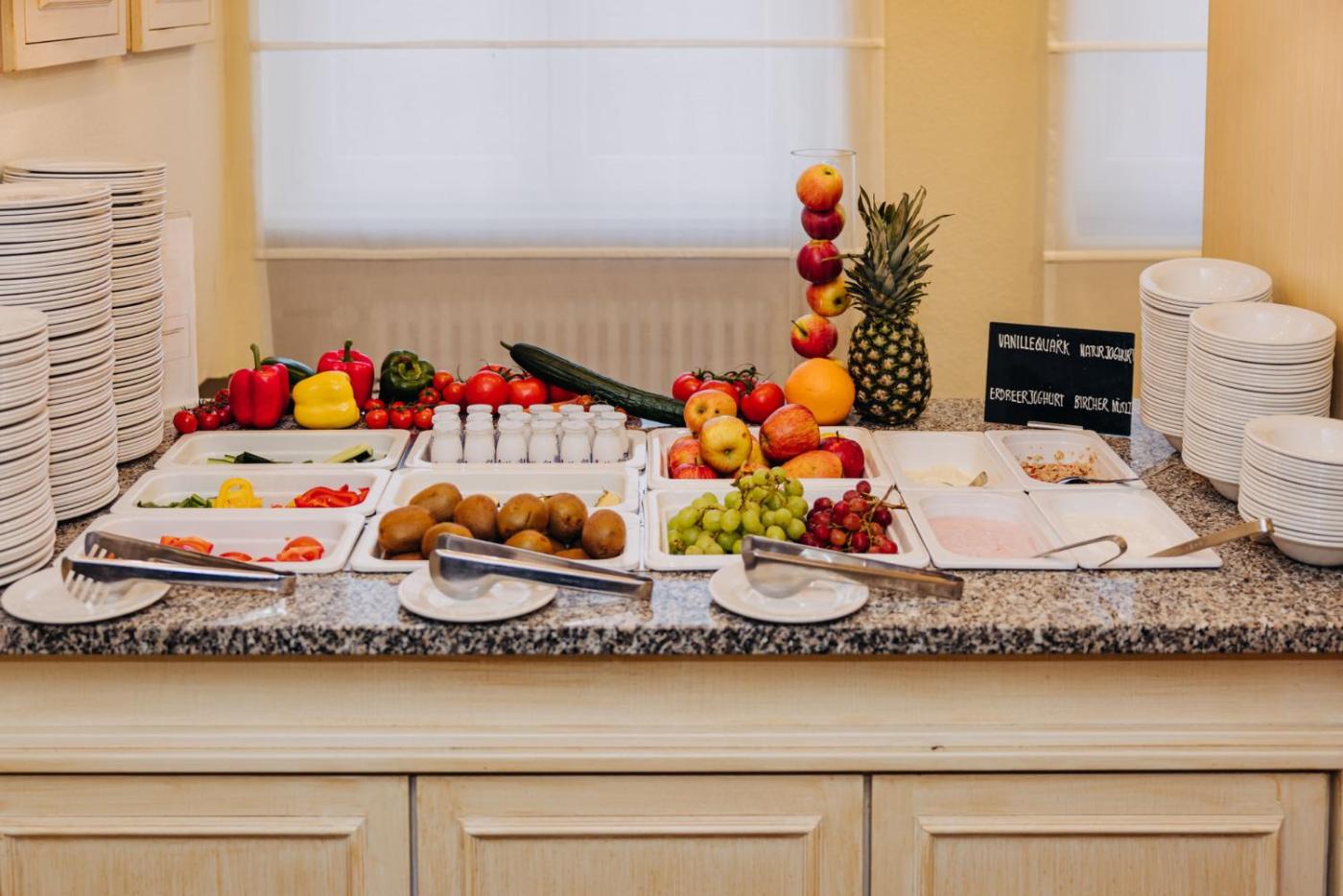 A buffet breakfast is provided at the hotel. Guests can also order lunch or dinner at the hotels restaurant, and eat in the garden during the summer.