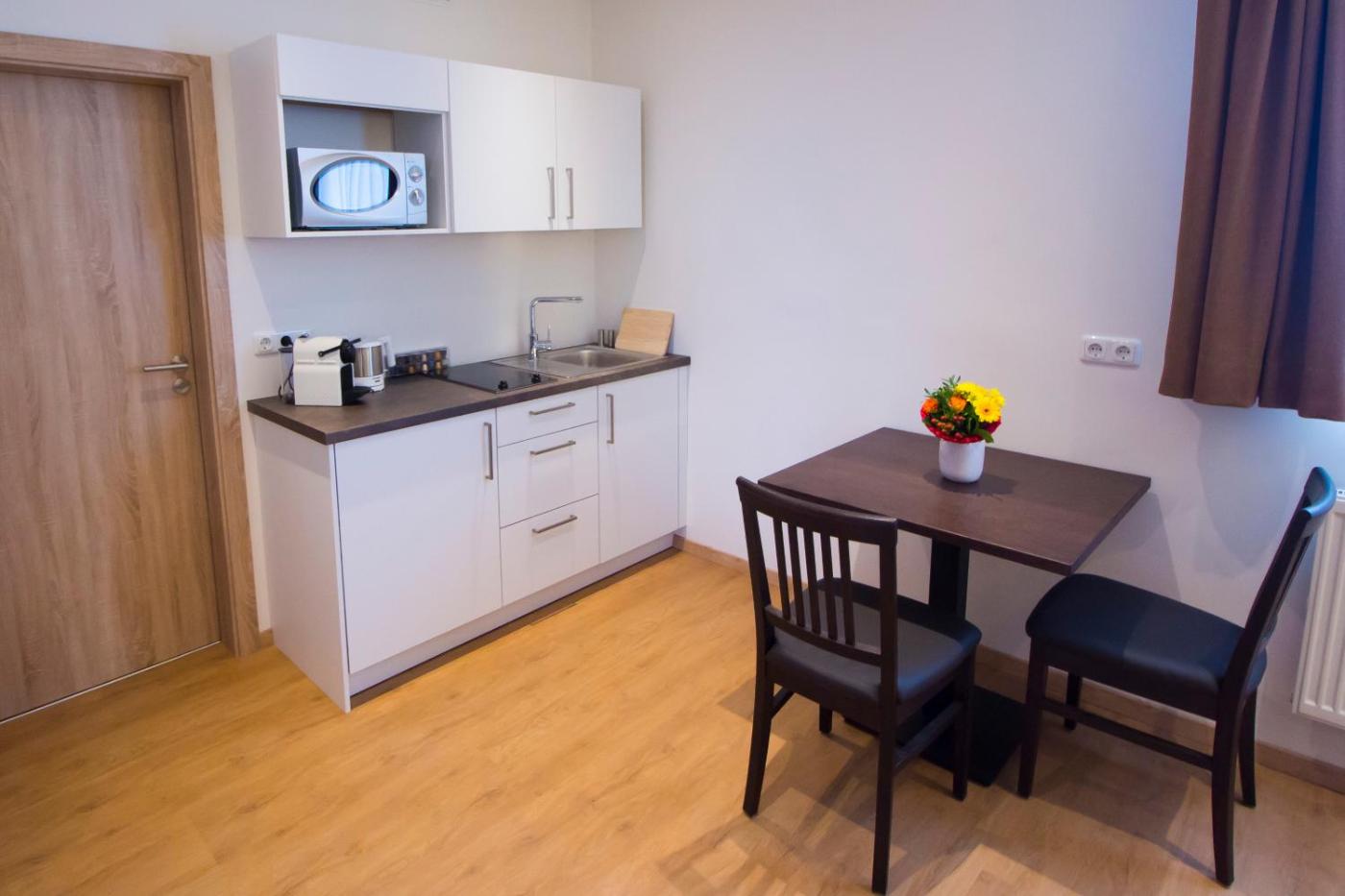 Standard Apartment. The apartment features 1 bedroom and 1 bathroom with a shower and free toiletries. The well-fitted kitchen has a stovetop, a refrigerator, kitchenware and a microwave. The apartment offers a tea and coffee maker, a seating area, a dining area, a flat-screen TV with satellite channels, as well as ancourtyard view. The unit offers 1 bed. ;