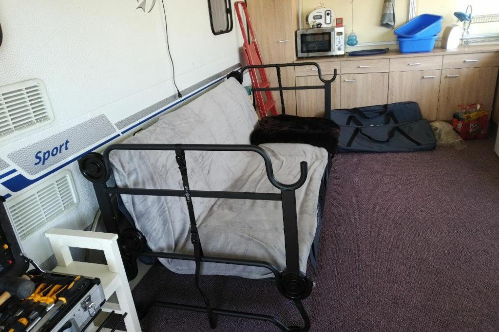 Caravan. This mobile homes special feature is the sauna. This mobile home comprises a kitchenette, a seating area, 1 separate bedroom and 1 bathroom with a shower and a hairdryer. Guests will find a stovetop, a refrigerator, kitchenware and a microwave in the fully equipped kitchenette. The mobile home also provides guests with a barbecue. This mobile home features a tea and coffee maker, a wardrobe, a flat-screen TV with satellite channels and outdoor furniture. The unit offers 3 beds.