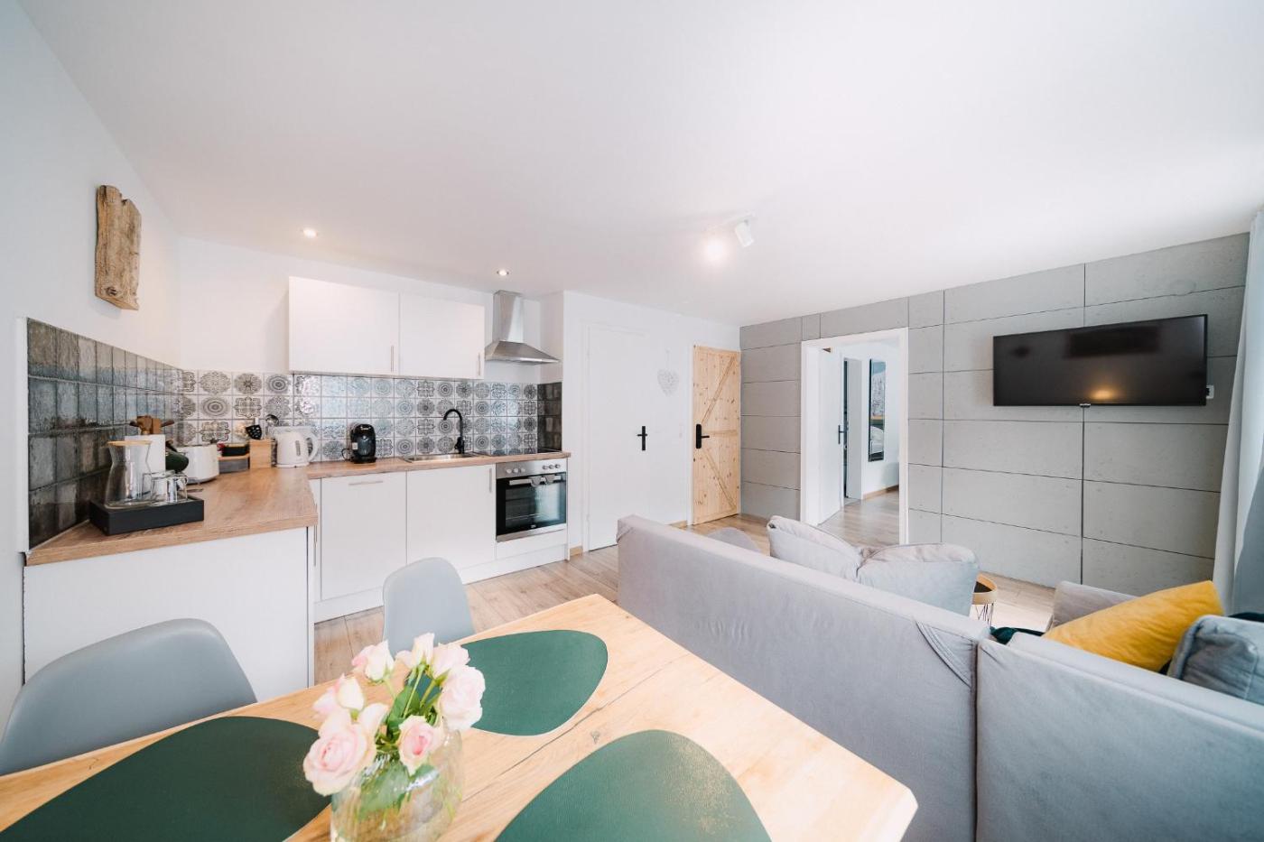 Apartment. This apartment comes with 1 living room, 1 separate bedroom and 1 bathroom with a shower and free toiletries. Guests can make meals in the kitchen that features a stovetop, a refrigerator, a dishwasher and kitchenware. This apartment has a tea and coffee maker, flat-screen TV with cable channels, garden views, as well as chocolate for guests. The unit has 2 beds.
