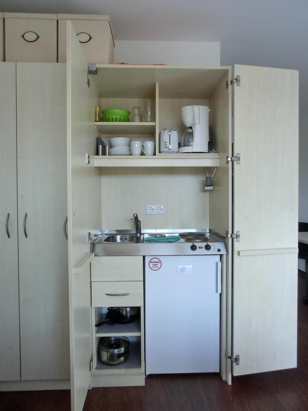The apartment comes with a TV and a living room. The kitchen is equipped with a toaster, a fridge and a stovetop, as well as coffee machine and kettle.