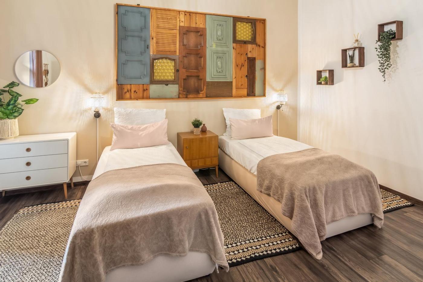 Three-Bedroom Apartment. Featuring 3 bedrooms and 1 bathroom, this spacious apartment offers a living room and terraceyou can relax. The apartments kitchen is available for cooking and storing food. This apartment features a washing machine, heating and a flat-screen TV. The unit has 7 beds.