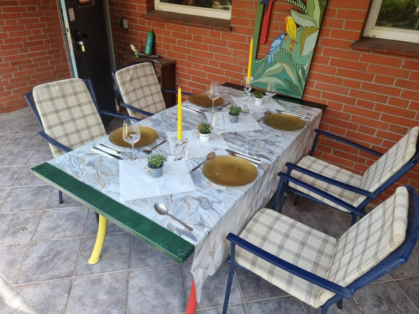 Three-Bedroom House. Guests will have a special experience as this holiday home provides a fireplace. Featuring a private entrance, this spacious holiday home also is comprised of 3 separate bedrooms and 2 bathrooms with a bath and a shower. The well-equipped kitchen features a dishwasher, kitchenware, an oven and a microwave. The air-conditioned holiday home offers a TV with satellite channels, a washing machine, a coffee machine, a barbecue as well as garden views. The unit offers 3 beds.