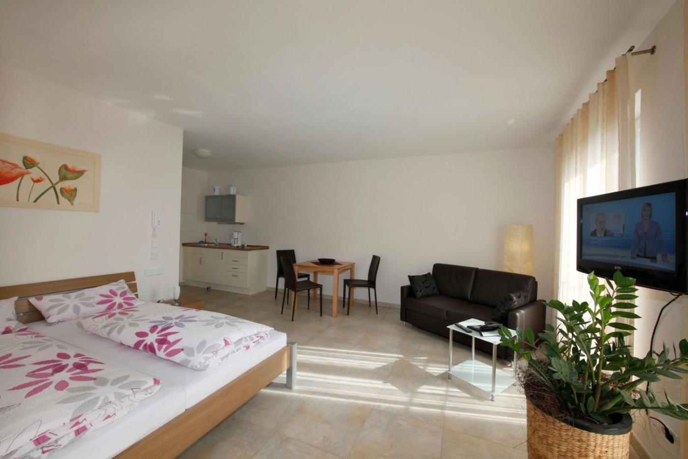 One-Bedroom Apartment. In the fully equipped kitchenette, guests will find a stovetop, a refrigerator, kitchenware and a toaster. This apartment has a tea and coffee maker, flat-screen TV with satellite channels, garden views, as well as winechampagne for guests. The unit has 1 bed.