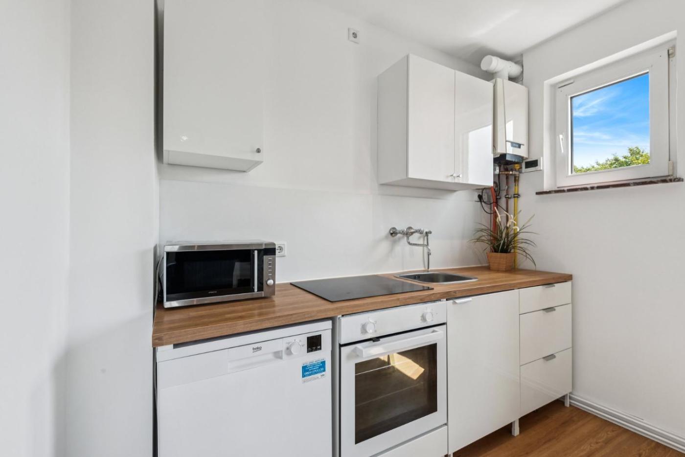 Two-Bedroom Apartment. Boasting a private entrance, this apartment comes with a kitchen, 2 bedrooms and 1 bathroom with a shower and a hairdryer. In the well-fitted kitchen, guests will find a stovetop, a refrigerator, a dishwasher and kitchenware. The apartment features a flat-screen TV, a washing machine, a coffee machine, heating as well as garden views. The unit has 4 beds.