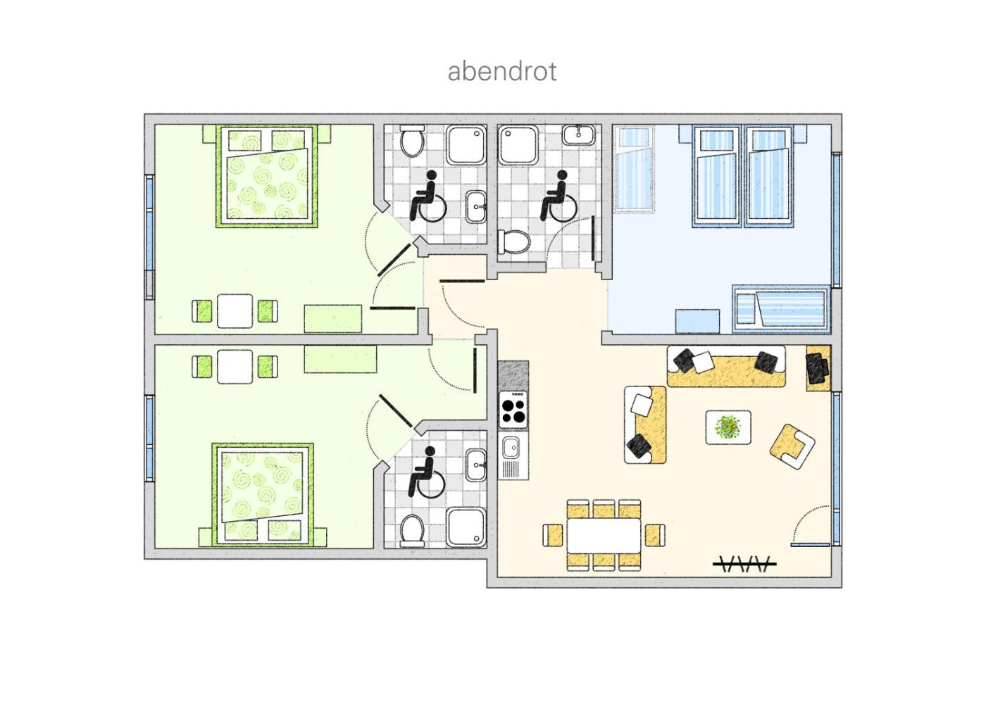 Comfort Two-Bedroom Apartment. This spacious apartment consists of 1 living room, 2 separate bedrooms and 2 bathrooms with a shower and free toiletries. In the well-equipped kitchen, guests will find a stovetop, a refrigerator, a dishwasher and kitchenware. Featuring a balcony with garden views, this apartment also provides a tea and coffee maker and a flat-screen TV with satellite channels. The unit offers 3 beds. ;