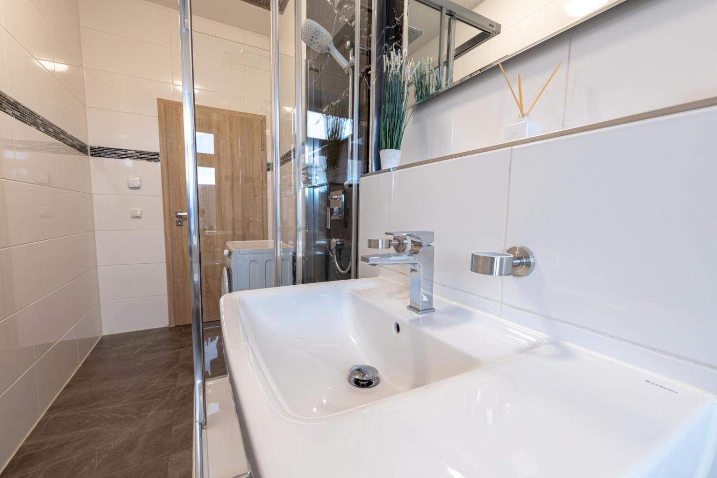 Three-Bedroom Apartment. This spacious apartment comprises 3 bedrooms, kitchen and 1 bathroom with a hairdryer. Guests can make meals in the kitchen that is equipped with a stovetop, a refrigerator, a dishwasher and an oven. The apartment provides a washing machine, a tea and coffee maker, a dining area, a sofa and a flat-screen TV. The unit offers 5 beds.