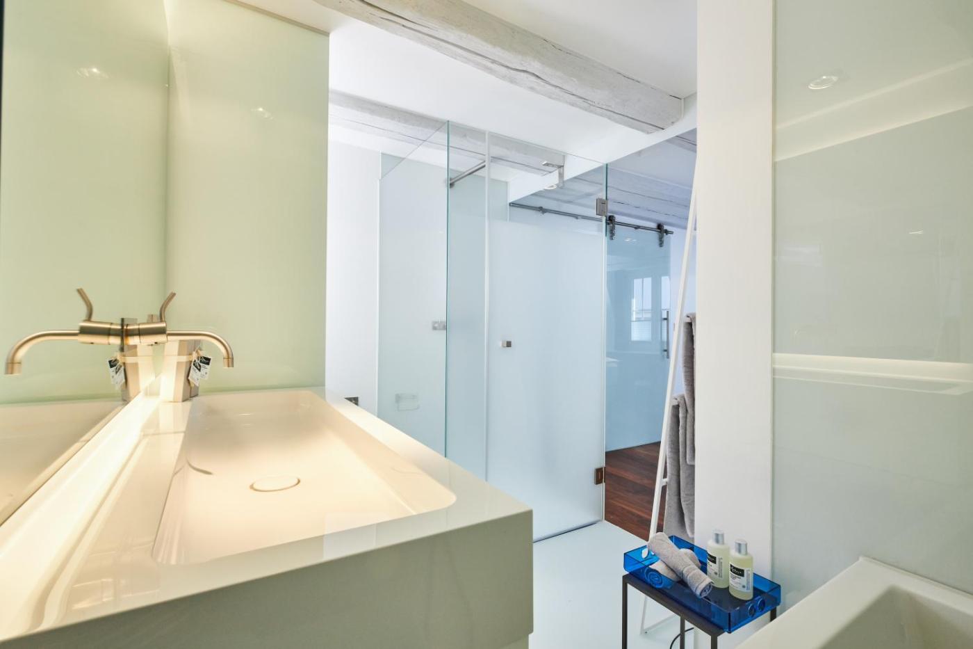 Double Room. Offering free toiletries and bathrobes, this double room includes a private bathroom with a walk-in shower, a hairdryer and slippers. The double room features parquet floors, a seating area with a flat-screen TV, a coffee machine, a wardrobe as well as city views. The unit offers 1 bed. ;