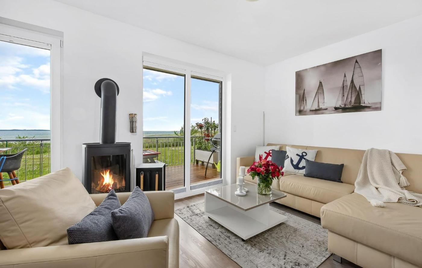 The holiday home with a balcony and sea views features 2 bedrooms, a living room, a TV, an equipped kitchen with a dishwasher and an oven, and 1 bathroom with a hot tub. The accommodation offers a fireplace.