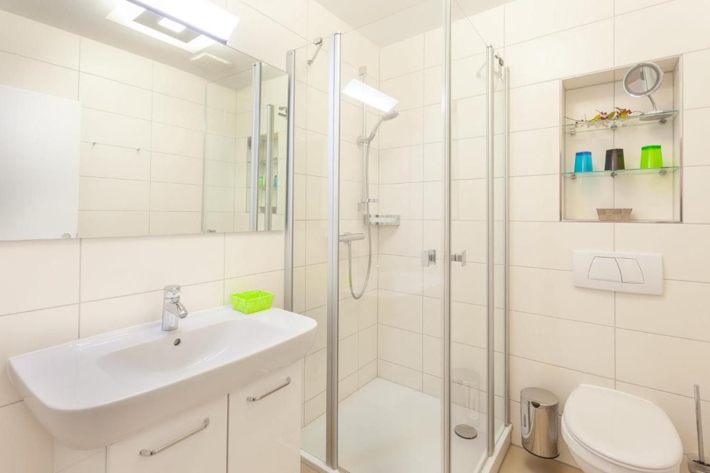 Apartment. This spacious apartment features 1 living room, 1 separate bedroom and 1 bathroom with a shower and a hairdryer. Guests can make meals in the kitchen that has a stovetop, a refrigerator, a dishwasher and an oven. Boasting a balcony, this apartment also features a washing machine, a coffee machine and a flat-screen TV. The unit has 2 beds.