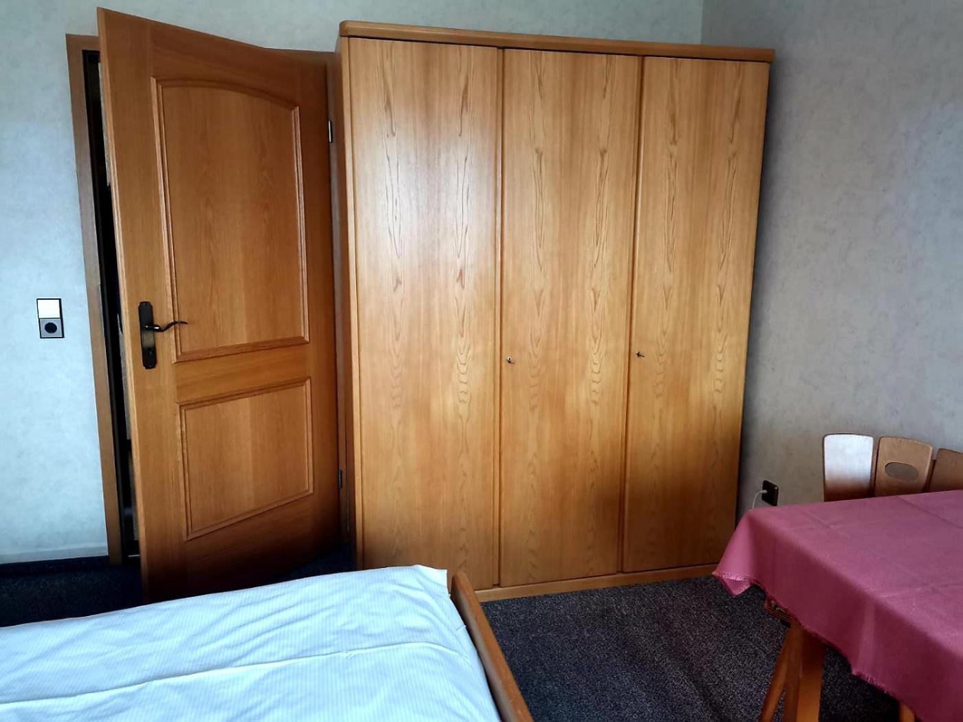 Triple Room with Bathroom. The triple room features a seating area, a wardrobe, as well as a private bathroom boasting a bath and a shower. This triple room has a carpeted floor, heating and a TV. The unit has 2 beds.