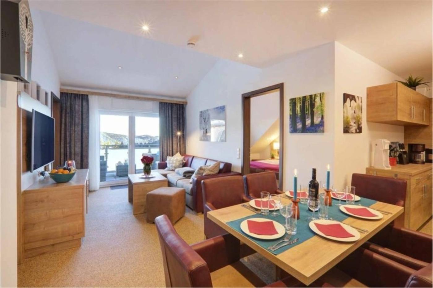 Apartment. This apartments special feature is the hot tub. This apartment consists of 1 living room, 2 separate bedrooms and 1 bathroom with a bath and a shower. In the well-fitted kitchen, guests will find a stovetop, a refrigerator, a dishwasher and an oven. Featuring a balcony with mountain views, this apartment also provides a washing machine and a flat-screen TV. The unit offers 3 beds.