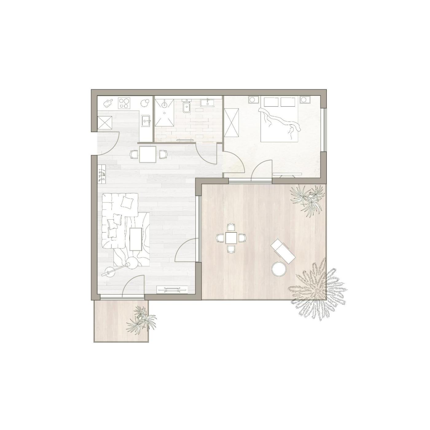 Apartment with Balcony. This apartments special feature is the sauna. This spacious apartment comprises a kitchen, a seating area, 1 separate bedroom and 1 bathroom with a shower and a hairdryer. Meals can be prepared in the well-fitted kitchen, which is equipped with a stovetop, a refrigerator, a dishwasher and kitchenware. Featuring a balcony, this apartment also provides a washing machine, a coffee machine and a flat-screen TV with satellite channels. The unit offers 1 bed.