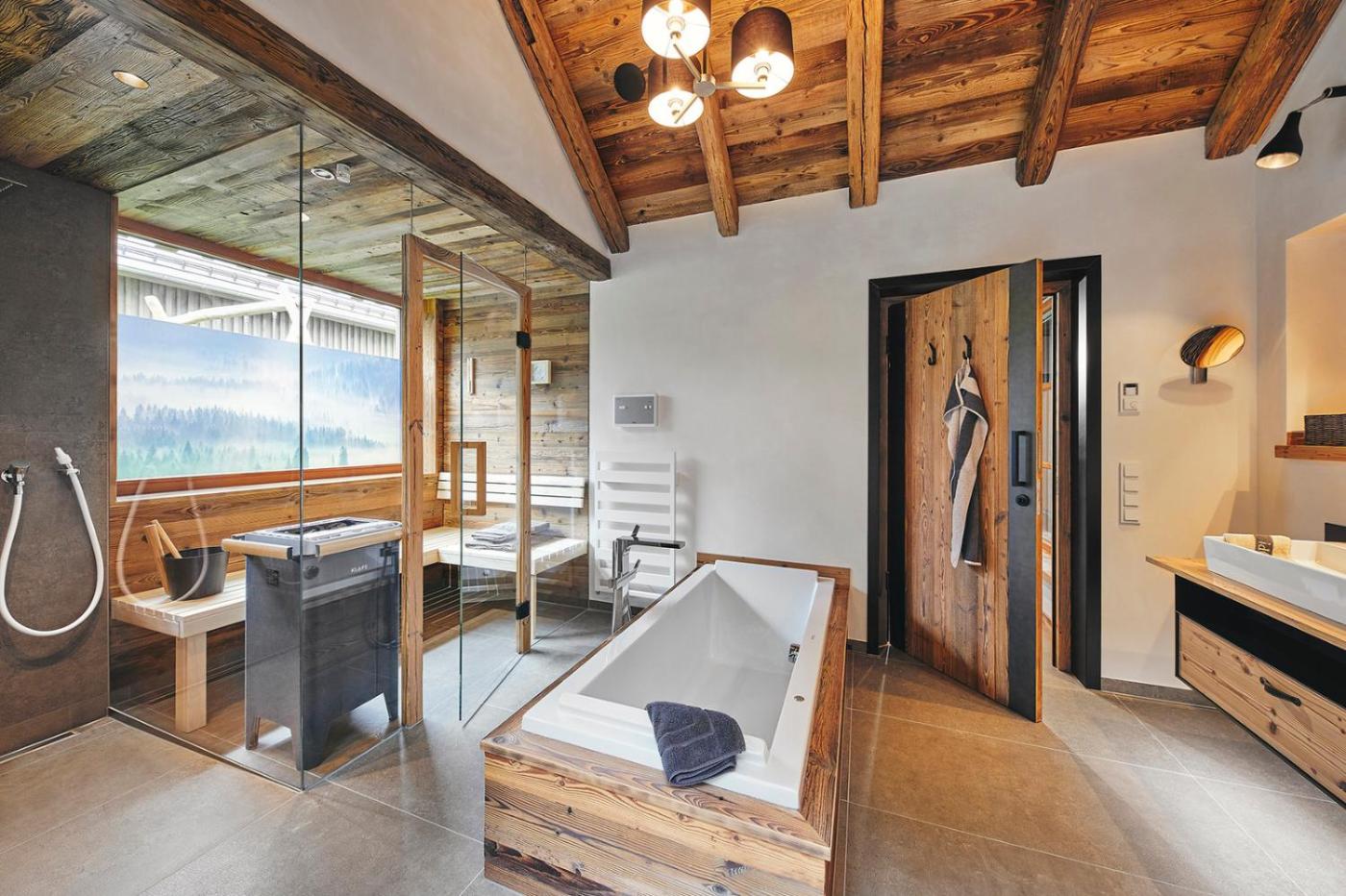 Superior Chalet. This chalets standout features are the sauna and fireplace. This spacious chalet comes with 1 living room, 3 separate bedrooms and 2 bathrooms with a walk-in shower and a bath. The fully equipped kitchen has a stovetop, a refrigerator, a dishwasher and kitchenware. Boasting a terrace with garden views, this chalet also features a private entrance and a flat-screen TV with satellite channels. The unit has 4 beds.