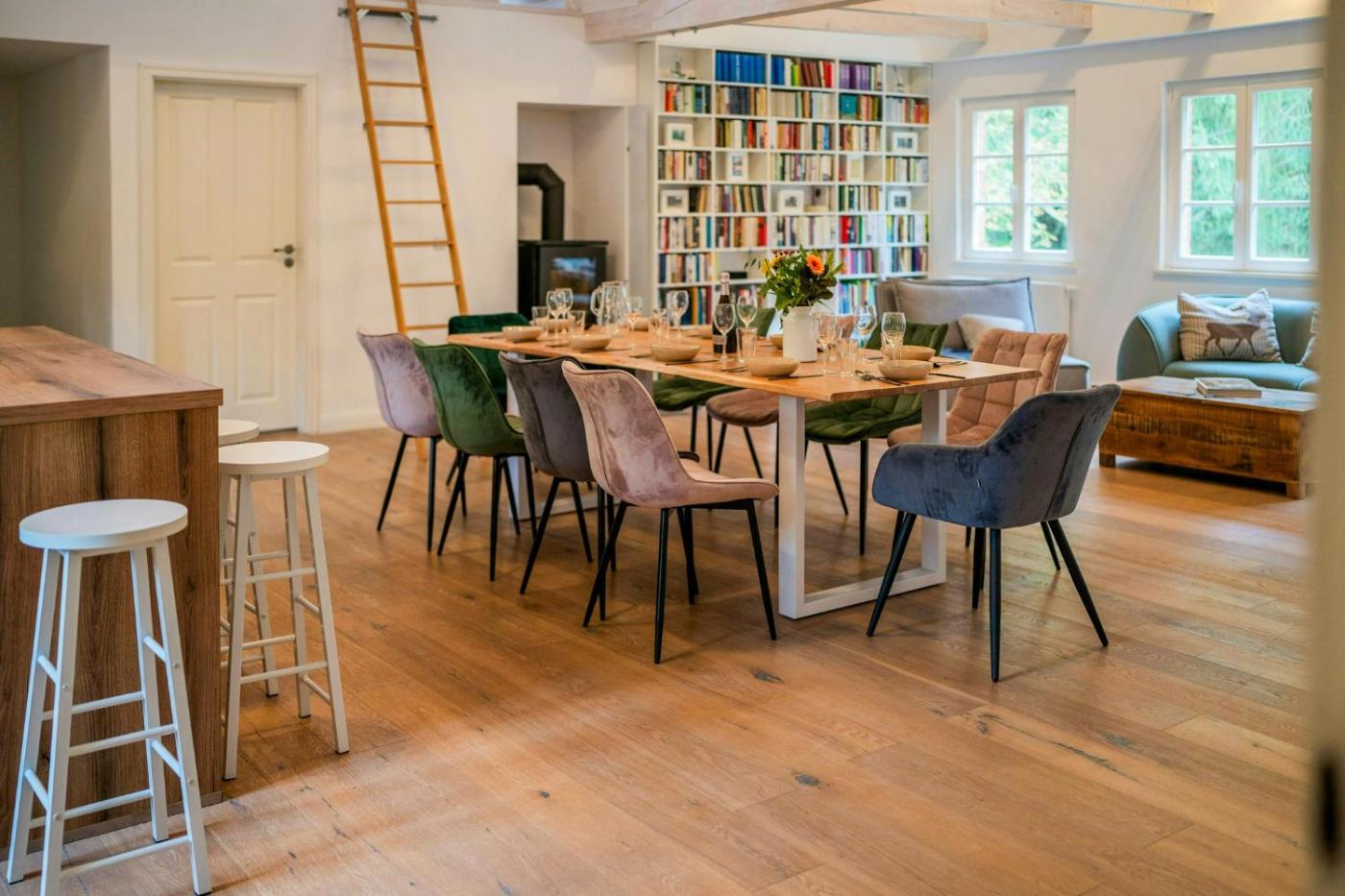 The holiday home is composed of 6 separate bedrooms, 2 living rooms, a fully equipped kitchen with a dishwasher and oven, and 2 bathrooms. Towels and bed linen are provided in the holiday home. The accommodation offers a fireplace.